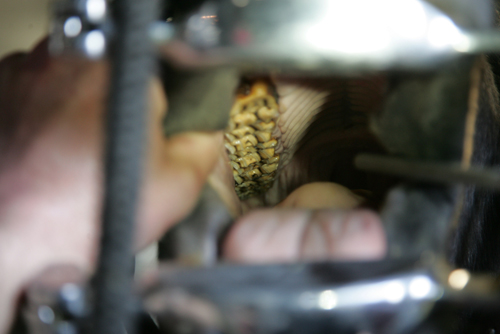 - Long fibres in the droppings. If the fibres are significantly longer than in other horses droppings, this indicates poor grinding during chewing