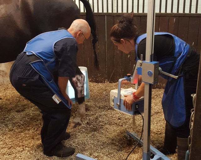 The solution is simple: mobile digital radiography. We have recently upgraded our old Cuattro Slate DR system to the new state of the art Cuattro Slate 6 digital system. This allows us to perform hospital quality X-rays on site with ease – we are currently the only equine practice in the area to be able to offer this service of this quality!