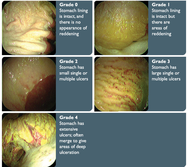 We grade the squamous lining of the stomach on a scale of zero to four depending on the severity of the ulcers: